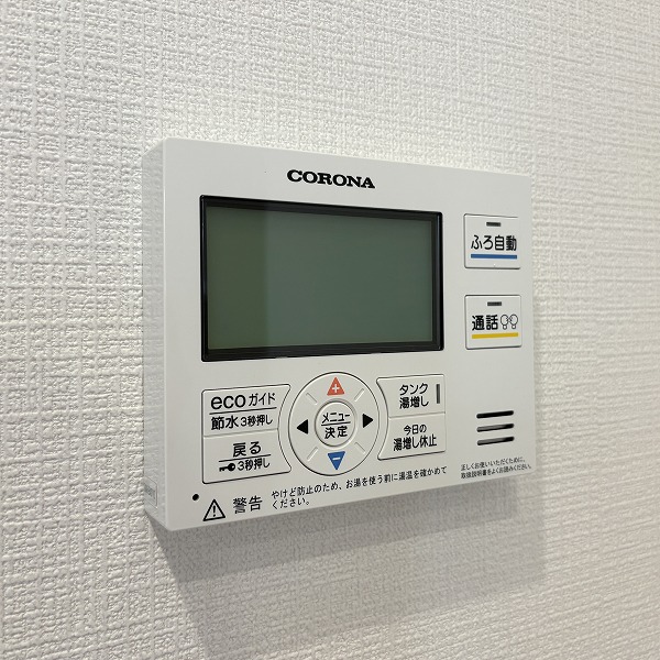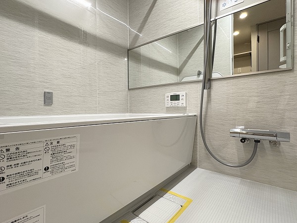 上質な雰囲気のバスルームにはワイドなミラーが設置されていて、空間を広く感じさせます。快適なご入浴に欠かせない追い焚き機能が搭載されているので、いつでもポカポカのお湯に浸かることができますね☀浴室乾燥機付きで、湿度の高い雨の日にお洋服を乾かすことも可能です!