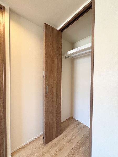 温かみのあるブラウン木目のドアが続く廊下は、落ち着いた空気感と清潔さが魅力。各部屋にしっかり扉が付いているため、来客時でも生活空間が視線に入らず、プライバシー面でも安心です。