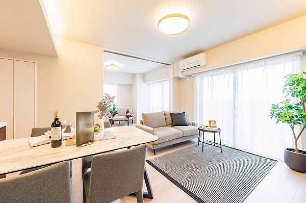 約7.0帖の洋室は2面採光で明るく、スライドドアを開ければリビングと一体となり開放的な空間に。キッズスペースとしても最適で、リビングにいながらお子様の様子を見守ることができ、家族の暮らしに上質な安心感を添えます。