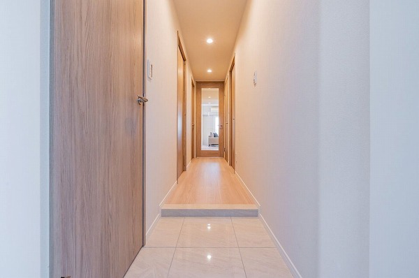 玄関には便利なシューズインクロークを完備。可動棚で高さのある靴も収納でき、大容量なので家族全員分の靴をまとめて片付けられます。ベビーカーもそのまま収納でき、玄関をいつもスッキリ保てる嬉しいポイントです。