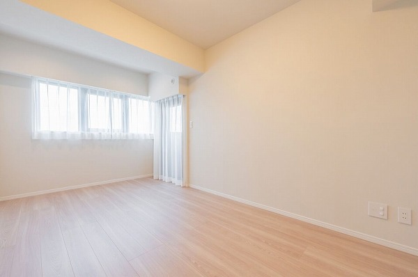 こちらの洋室は約7.1帖ほど。無駄のない長方形で、ベッドやデスクなど家具の配置がしやすいお部屋です。大容量のクローゼットが2つあるため、夫婦で分けたり衣類と日用品を分けて使ったりと自由度が高く、日常使いにも便利◎