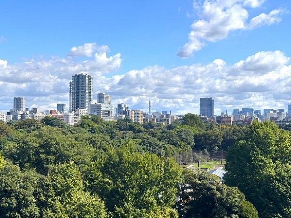 お部屋からバルコニーに出ると、目の前に大きな建物がなく陽当たりは抜群。自然の緑を眺めながら、青空の下でのんびりリフレッシュタイムを楽しむ時間も取れます。都心の景色を感じつつ、気持ちの良い光と風を感じられる開放的な空間です。