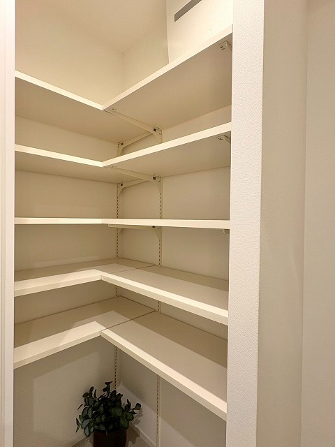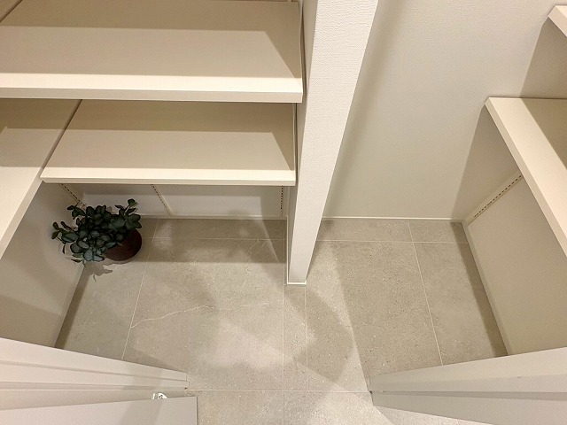 玄関に足を踏み入れると、広々としたシューズインクローゼットが目に入ります。家族の靴や小物をまとめてしまえるため、急な来客時も慌てずすっきりとした空間でお出迎え。朝の身支度や帰宅後の靴の片付けもスムーズで、毎日が気持ちよくスタートできますね。