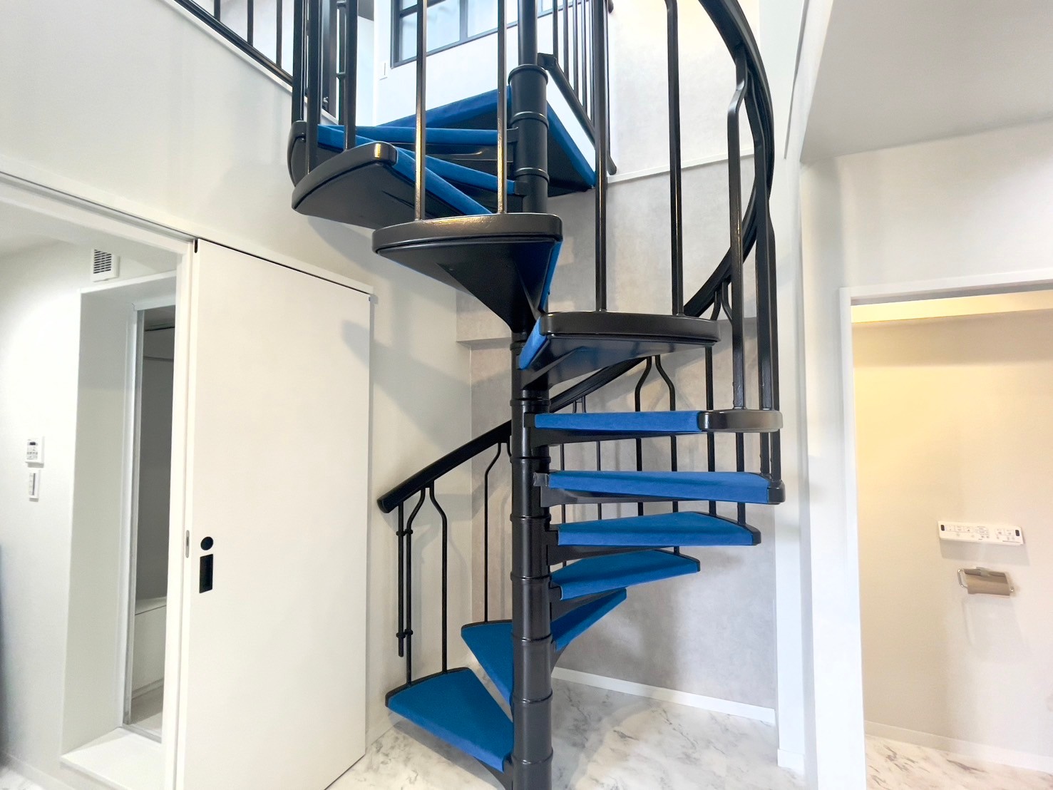 このお部屋は、上階に続くメゾネットタイプならではの特別感が魅力。らせん階段を上るとサンルームが現れ、光が届きにくい玄関周りまで明るく照らしてくれます。日常の動線に自然な明るさと開放感が生まれ、家全体が軽やかで居心地のいい空間へと変わります☀