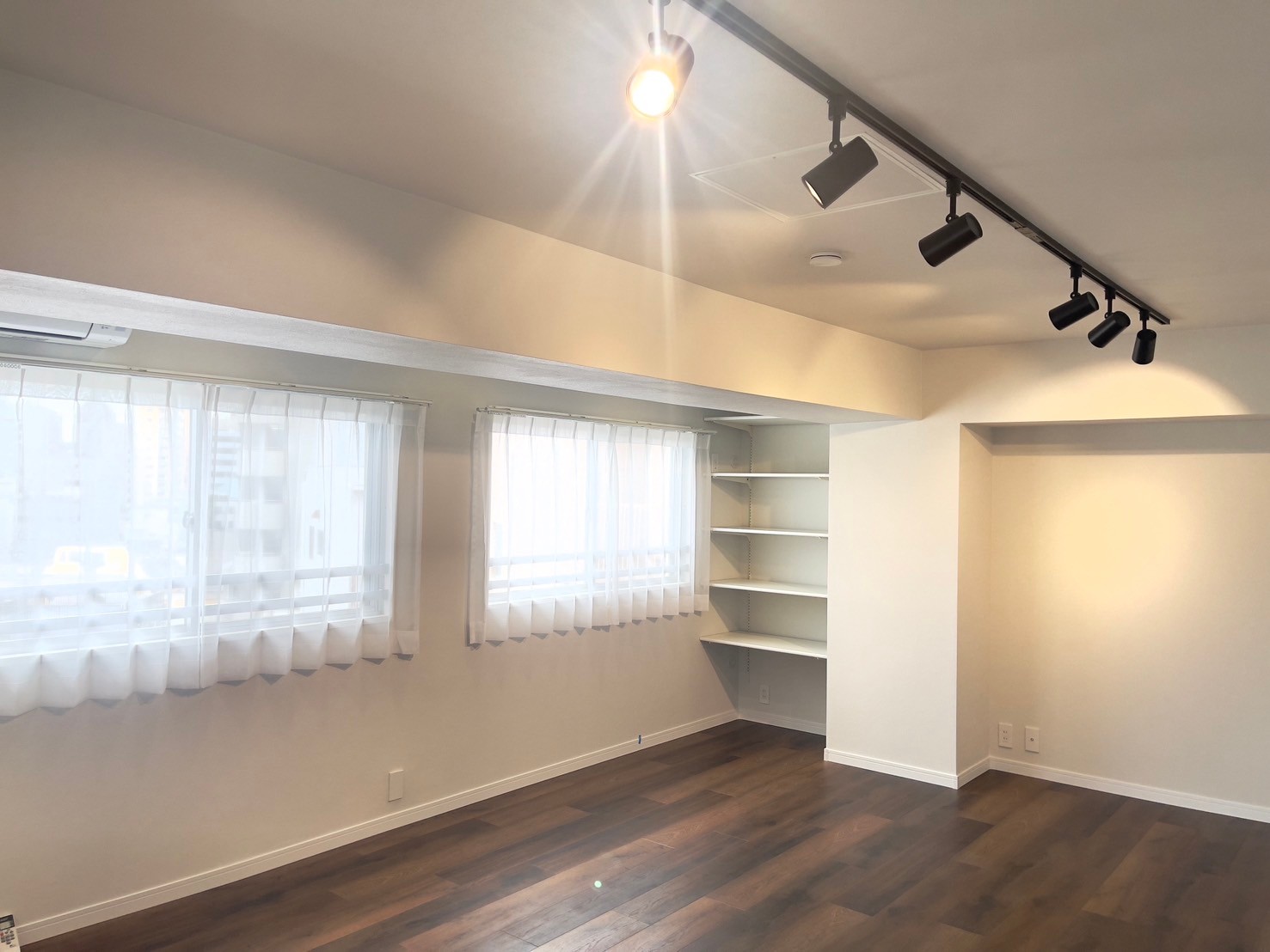2024年6月に生まれ変わった最上階のメゾネット空間。7階のリビングと8階の洋室は、2面から光が降り注ぎ、窓の向こうに広がる景色とともに明るく開放的な時間を演出します。ダクトレール照明はインテリアや気分に合わせて光の表情を変えられるので、毎日のお部屋作りがもっと自由で楽しくなりますよ♩