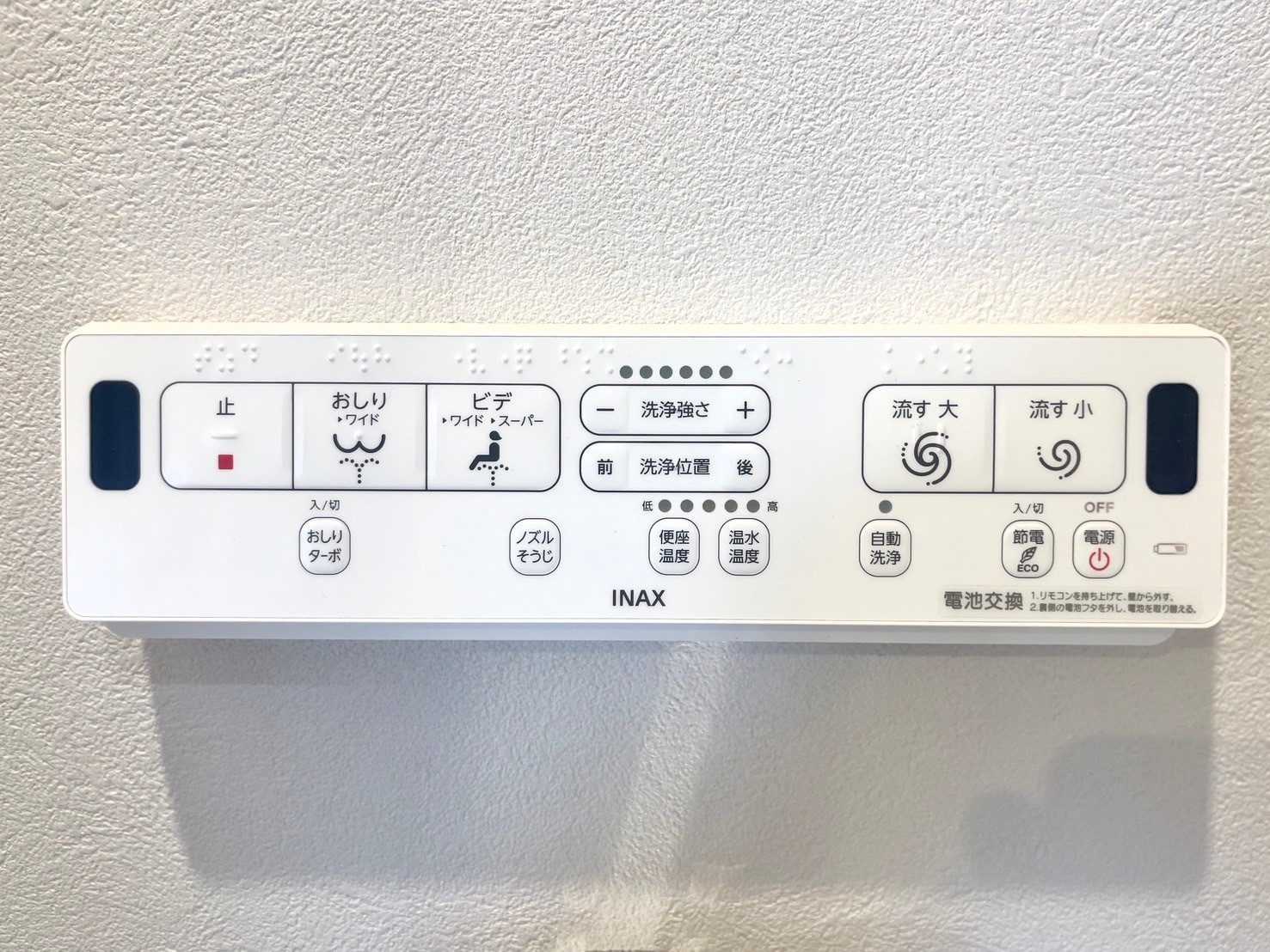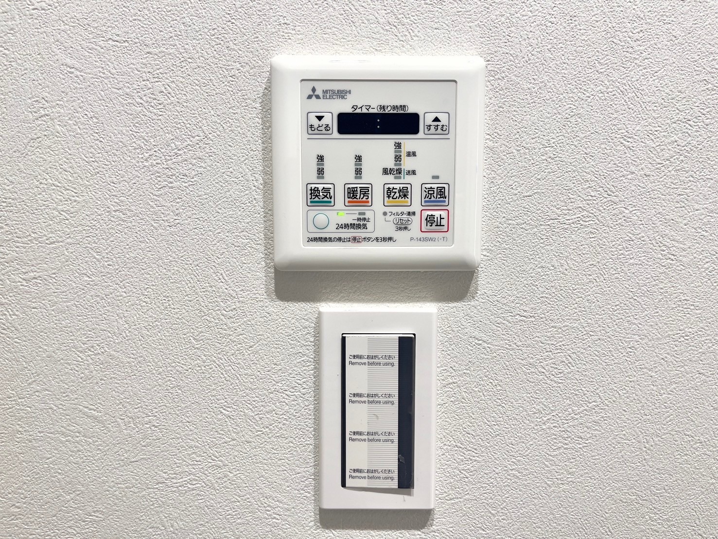 バスルームは木目調のパネルを一部採用し、視覚からも癒しを与えてくれますね。コンパクトなサイズ感ですが、浴室乾燥機や追い焚き機能など、便利な設備がしっかり備わっています。半身浴をして、毎日の疲れをしっかり癒してくださいね♡