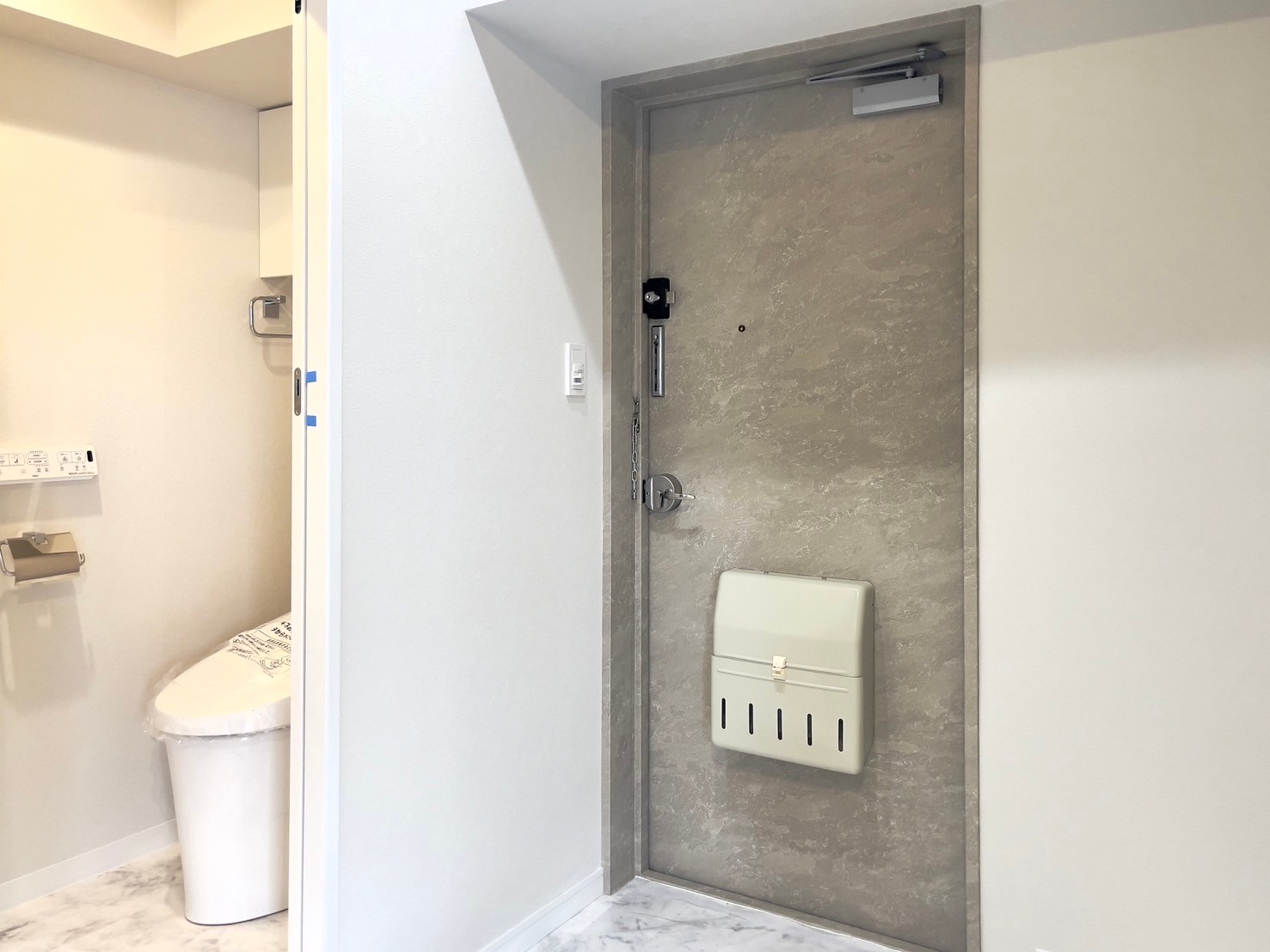 フルリノベーションの恩恵は綺麗な玄関に入った瞬間から感じることができます。玄関照明は自動点灯するため、荷物で両手がふさがっていても、スムーズにお部屋に入れますね♪シューズボックスも設置されていました。