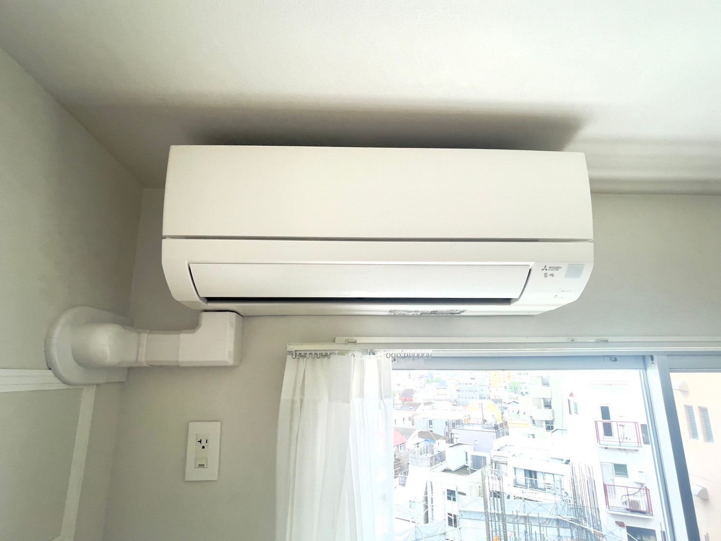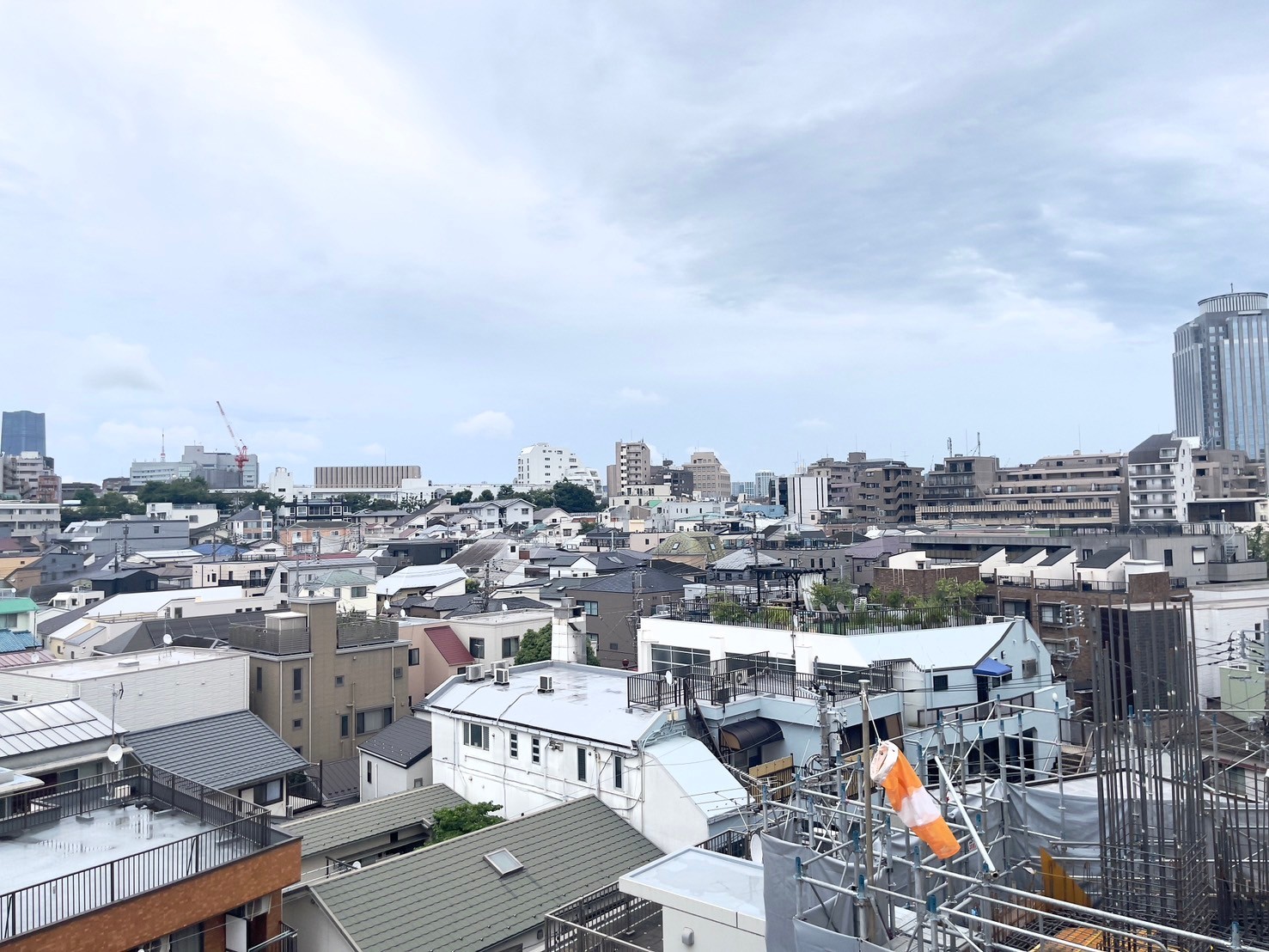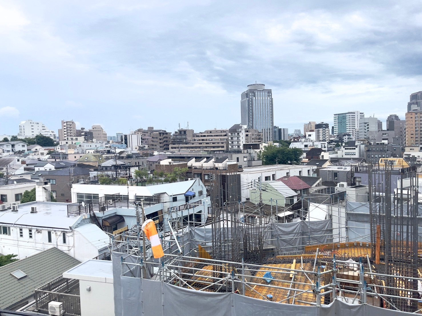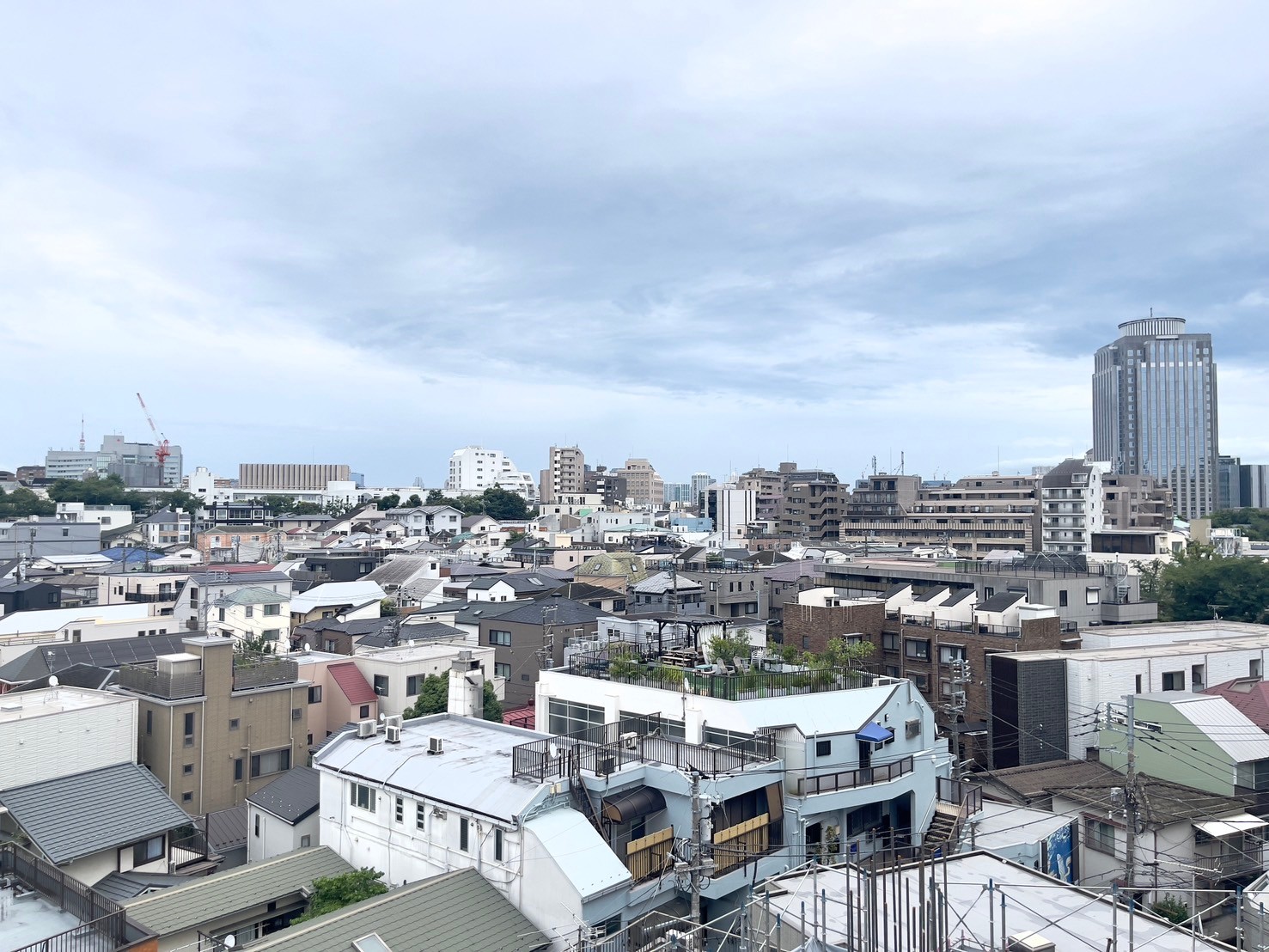 こちらがメインのリビングダイニングキッチン。独特な形のリビングですが、南東・北西の2台のエアコンがしっかり空気を循環させ、キッチン周りまで快適な温度を保ってくれます。晴れた日には、窓越しに東京タワーがそっと顔をのぞかせ、リビングからの眺めにちょっとした特別感を添えてくれますよ。