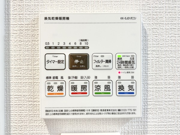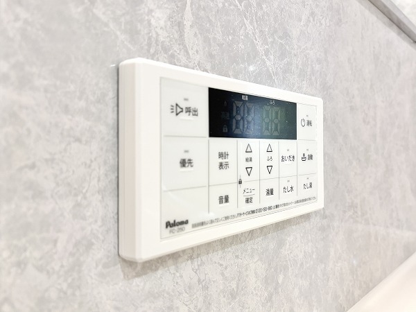 バスルームは、モダンな雰囲気を醸し出しているグレーのバスパネルが特徴的。浴室内の湿気防止に役立つ浴室乾燥機が付いているため、梅雨の時期も安心です。更に追い焚き機能が備わっており、忙しい日でもワンタッチでお湯を温め直すことができて便利◎