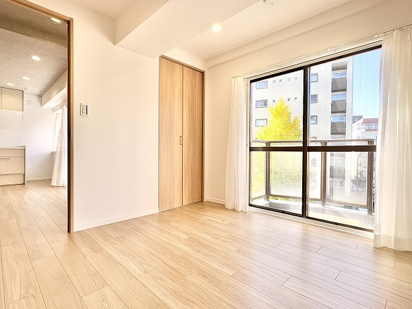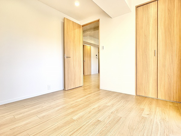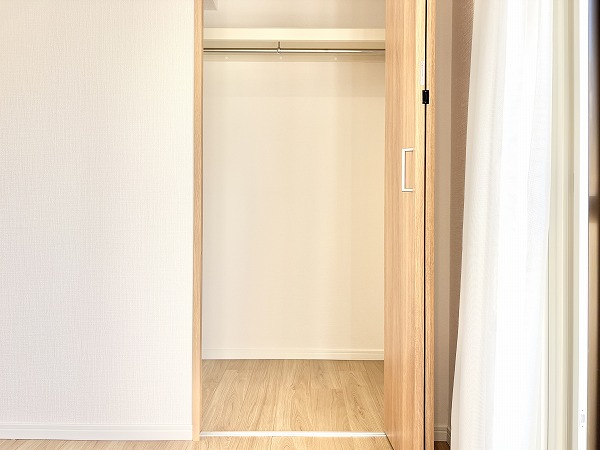 主寝室におすすめの約5.4帖の洋室。様々な家具やリネン類とも相性抜群な内装なので、自分好みのお部屋作りを楽しむことができますよ✨季節に合わせて模様替えをするのも楽しそうですね。年々増えていくお荷物を収納できるクローゼット付き。