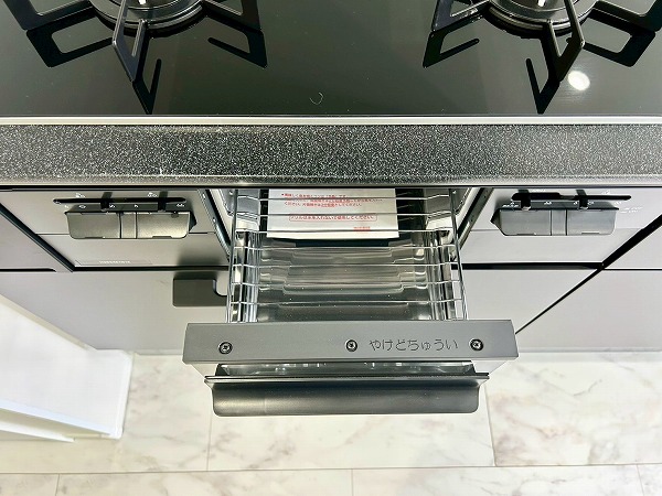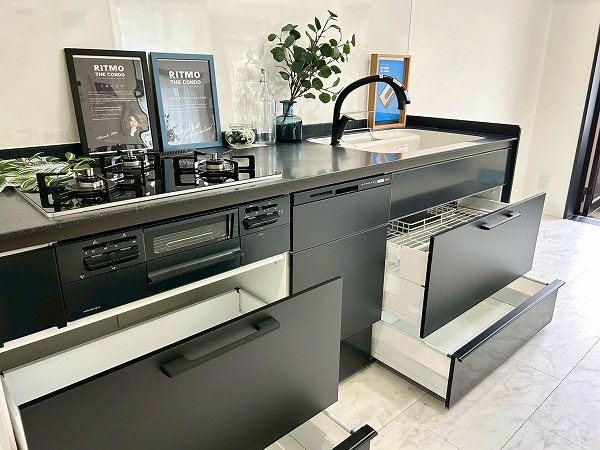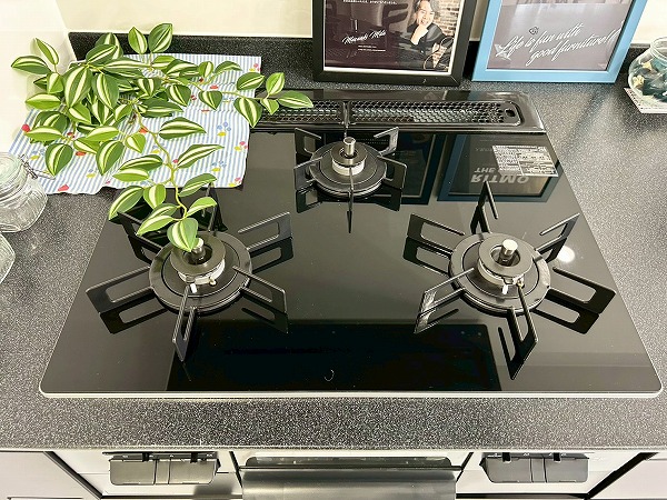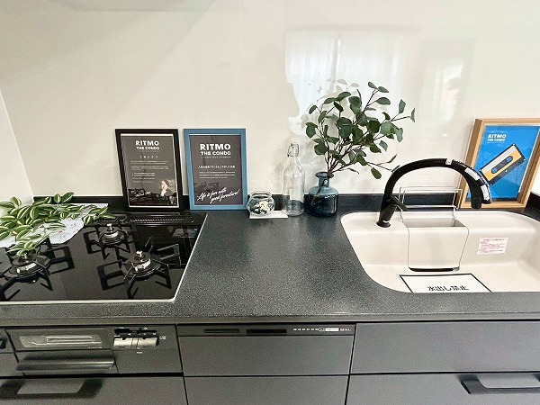 キッチンは3口コンロ、食洗機付きとなっております。また、蛇口は手をかざすと自動で水やお湯が出るタッチレス水栓を採用し、見た目もスタイリッシュで、衛生的です✦