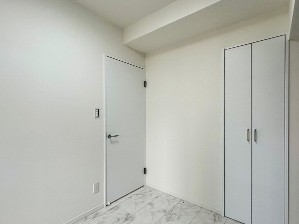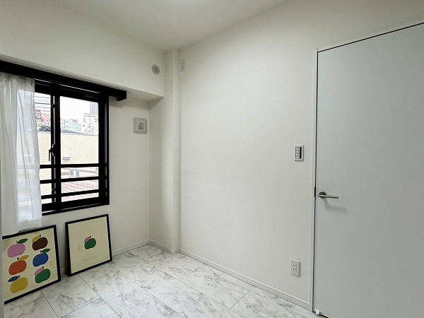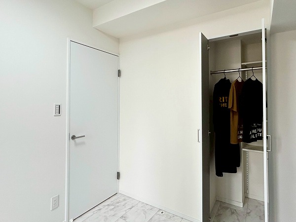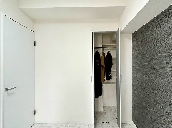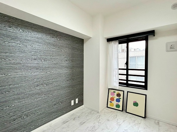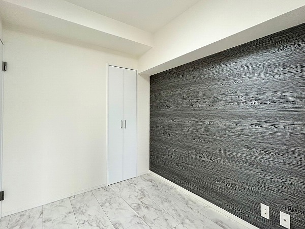 約4.4帖の洋室は片面がグレーの壁紙になっており、オシャレで落ち着いて過ごせそうです✿また、こちらにはウォークインクローゼットが設置されており、沢山お洋服を収納できますよ♪