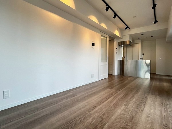 リビングダイニングキッチンは奥に向かってたっぷりとしたスペースが取られ、約10.5帖とは思えない広さ。1~2人での暮らしにちょうどいいサイズ感ですね!スタイリッシュなキッチンとシーリングライトがこのお部屋のアクセント。この2つを中心にインテリアを組めば、大人な渋谷の街にぴったりなお部屋の完成です✧