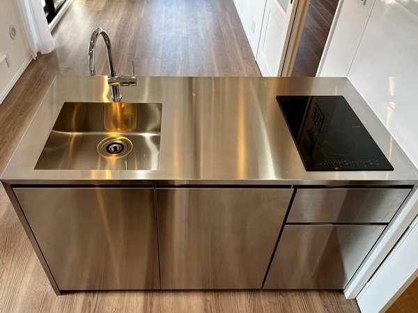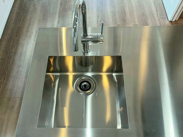 メインルームでひときわ存在感を放つこちらのインダストリアルキッチン。無駄が省かれたデザインを実現しながら、料理好きにも嬉しい2口のIHクッキングヒーター搭載です。シンク下は包丁から鍋まで基本的な調理家具は何でも入る優れもの。ミニマルながらベストな機能が詰め込まれています。
