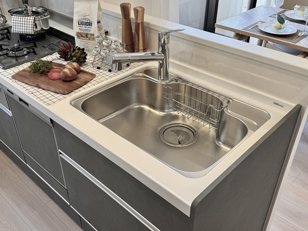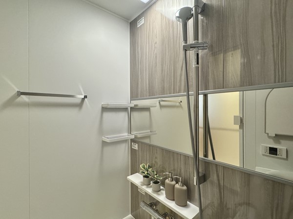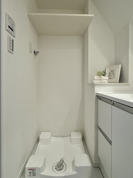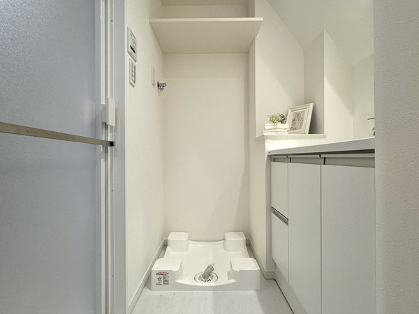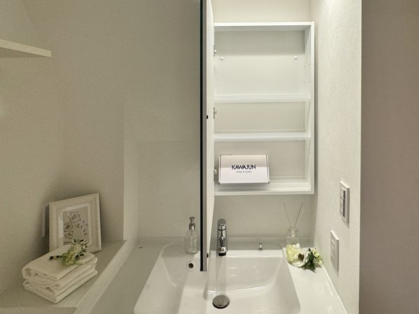 シンプルながら上質感のあるサニタリールームは、水回りを効率よく集約。洗面から洗濯までの動線がコンパクトにまとまり、日々の家事を快適にサポートしてくれます。収納スペースも豊富なので、洗剤類のストックなどをすっきり収納可能。