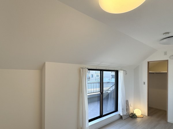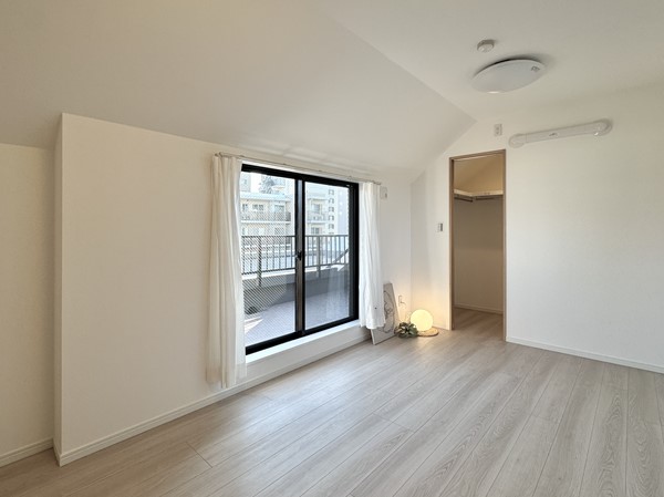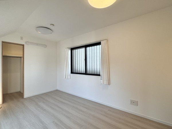 上階に設けられた洋室は約8.3帖と、ゆったりとしたサイズ感。ベッドや家具を配置しても圧迫感がなく、落ち着いたプライベート空間を演出。窓が2方面に窓があるため、光と風を心地よく取り込めますよ☀