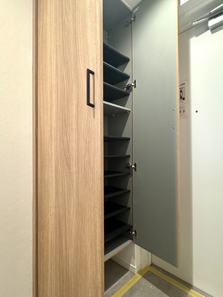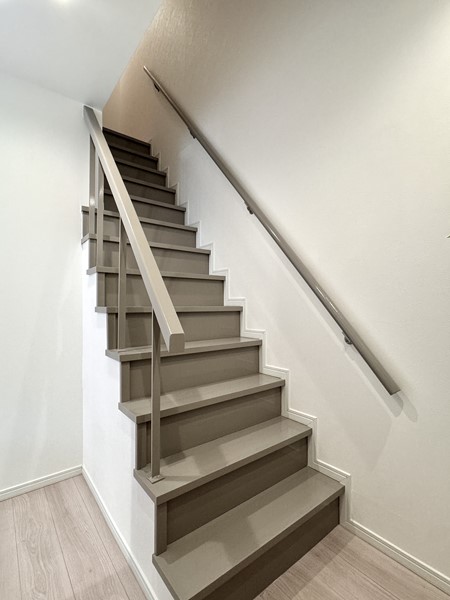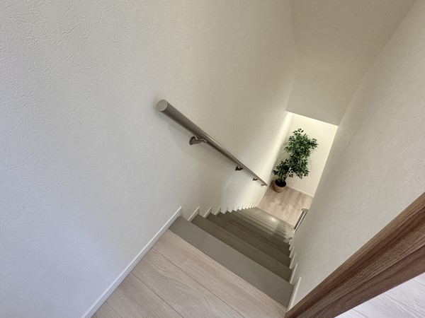 上下階をつなぐ室内階段は、メゾネット暮らしの醍醐味。視線が上下に広がり、空間に奥行きを感じさせてくれます。手すり付きで安全面にも配慮されており、デザイン性と実用性を兼ね備えた造りに。