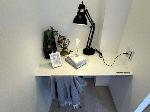 洋室の一角にはデスクスペースが設けられ、コンセントも完備。パソコン作業やリモートワーク、読書など、ライフスタイルに合わせて多目的に活用できます。自分だけの小さなワークスペースとして重宝しそう。
