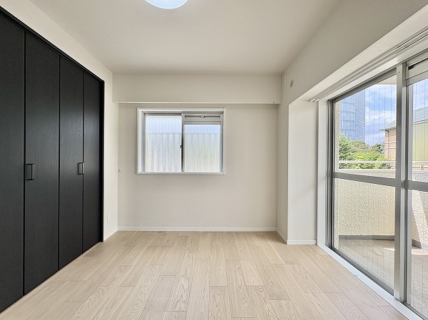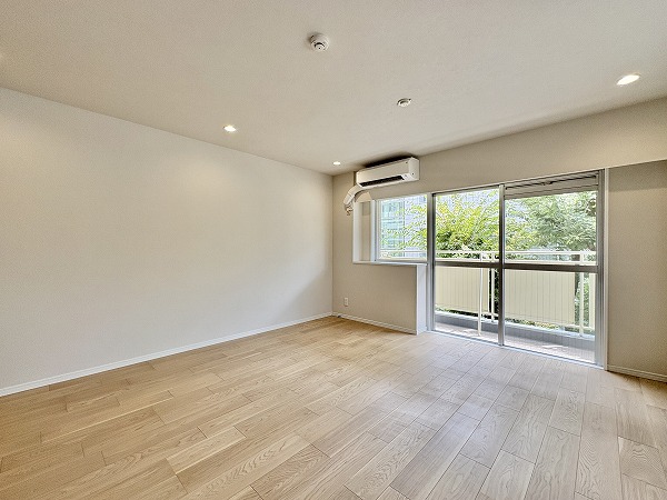 『目黒パークマンション』の2階のお部屋を訪れてみると、まず三方角部屋ならではの開放感に驚かされました。南・西・北の窓から光がたっぷり差し込み、リビングダイニングキッチンは約16.9帖の広さ以上に明るく広々!縦横のバランスも良く、家具をどのように配置しても窮屈さを感じにくい間取りです♩サービスルームは約4.5帖とコンパクトながら、窓がない分紫外線や日差しを気にすることがなく衣類や電化製品を安心して置けるのが便利◎洋室2部屋はどちらも大きな開口部で光を取り込み、朝の目覚めも気持ちよさそう。床暖房とエアコンが完備されているので、季節を問わず快適に過ごせる点もポイントです。是非現地にて家具の配置や生活動線をイメージしながらご覧になってくださいね✦ 撮影・ライター:mao【25J15】