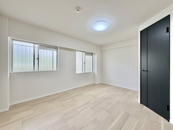 洋室の中で最も広い約7.4帖の一室。北向きの窓から柔らかな光が入り、落ち着いた雰囲気の中でゆったりとお過ごしいただけます。収納にはウォークインクローゼットを備え衣類はもちろん、シーズンオフの家電や大きな荷物もすっきり収められるので、お部屋を広々とご使用可能♩