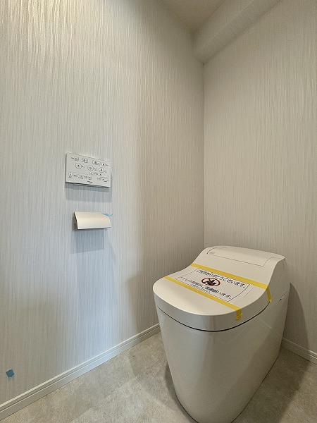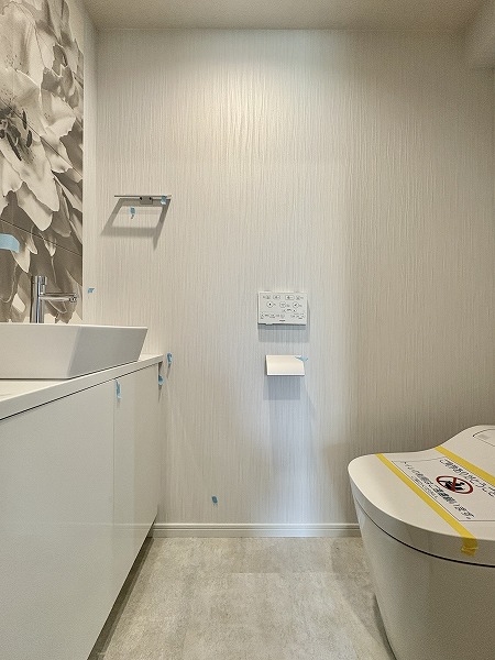 トイレは壁面に描かれたお花のイラストがアクセントとなり、華やかで優しい印象の空間に✿温水洗浄機能を備えているため毎回快適に使用できるのはもちろん、冬場の冷たさも気になりません◎