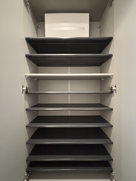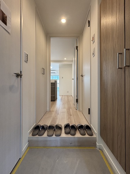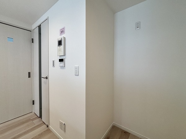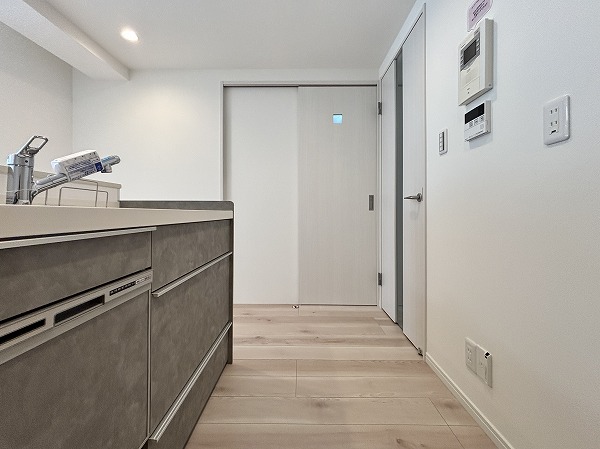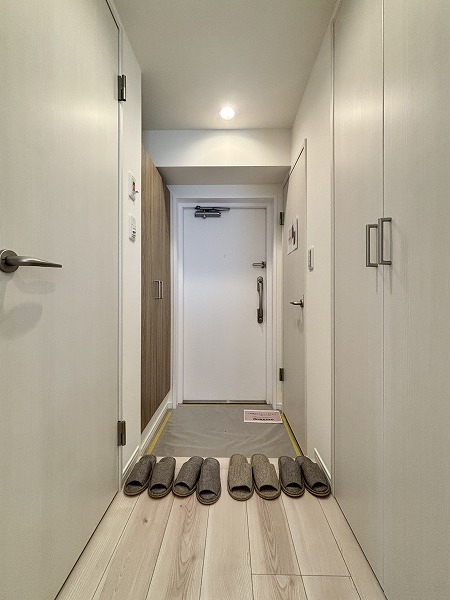 今回の1LDKでひときわ印象的だったのは、玄関の豊富な収納力◎右手のシューズボックスだけでも十分ですが、左手のドアを開けると…広々としたシューズインクローゼットが現れます!靴はもちろん、シーズン用品や日用品のストック、掃除道具などもすっきり収納可能。
