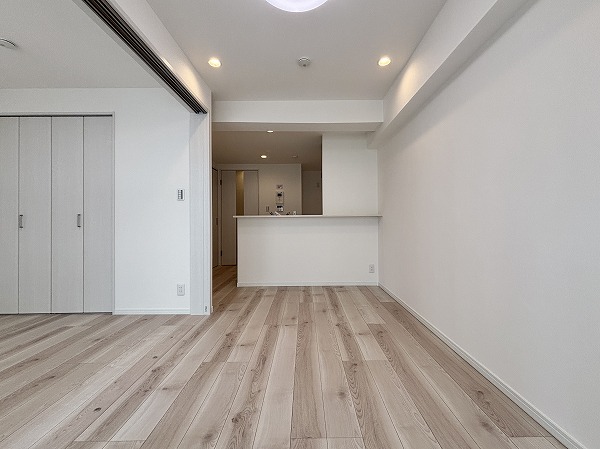こちらが今回ご紹介する1LDKです♫1人暮らしのお部屋をお探しの方にオススメ♥リノベーションが施され、シンプル且つナチュラルテイストの空間に変わりました✨メインルームは奥行きがあり、リビングとダイニングのスペースをしっかり分けることができますよ。