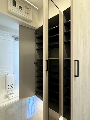 『大森駅前住宅2号棟』の8階にあるお部屋をご紹介しました。実際にお部屋を見てみて印象的だったのは、少し変わったS字型のメインルーム。ひとつながりの空間ではありながら、キッチン&ダイニングスペースと、リビングスペースをやんわりと棲み分けすることができるのでメリハリのある生活が叶いそうです。また、メインルームには南東向きの大きな窓が2面あり、朝日が燦燦と降り注いでいました。さわやかな朝を過ごしたい方にピッタリのお部屋ですね。2つある洋室にはいずれもしっかりとクローゼットが設けられ収納力も申し分ありません。スケルトンリノベーションが施され、ゼロから作り変えられた内装には、姿見つきのシューズクローゼットや、小窓の前のカウンターなど、痒いところに手が届くような生活に便利な工夫が節々に伺えるお部屋となっていました。ぜひ一度内見してみてくださいね。 撮影・ライター:kayo【25K01】