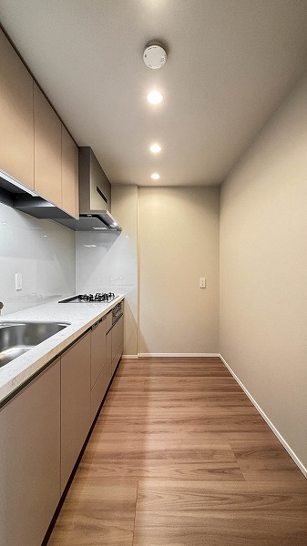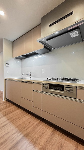 約3.3帖のキッチンスペースは独立感がありながら十分な広さを確保。作業スペースに余裕があるため、複数の料理を同時に進めることも可能です。新たにカップボードを設置すれば収納力がさらにアップし、調理道具や食器もすっきり整理できるのではないでしょうか✧