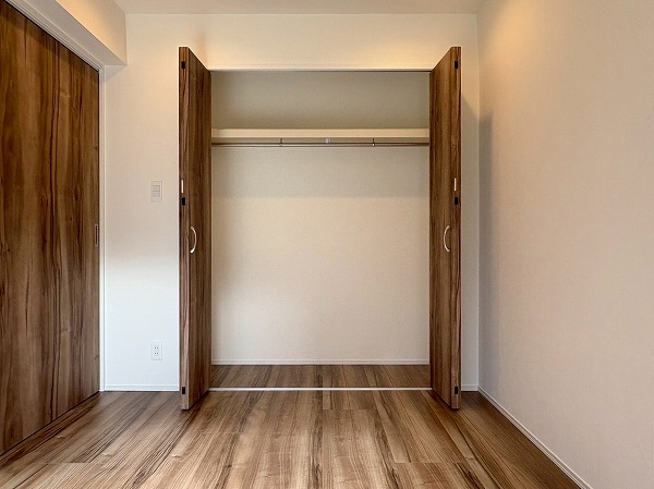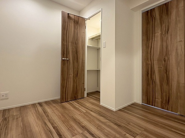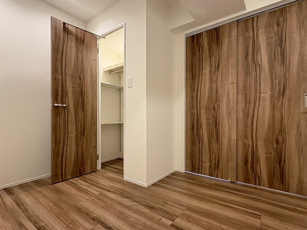 こちらは約6帖のベッドルームです。3枚の引き戸のインパクトを生かして、インダストリアルな家具やアメリカンインテリアなど、無骨なアイテムで部屋を作ってもカッコ良さそうです!シンプルな家具からちょっと派手な家具まで、意外と何でも受け止めてくれそうなお部屋だと思います...!