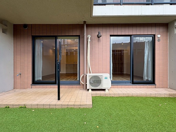 プライベートテラスはこの広さです!植物を育てることはもちろん、ペットやお子様の遊び場などとして活用できます!お隣さんとの庭は門で仕切られていますが、ベランダでは騒音や臭いなどに注意して過ごしましょう◎