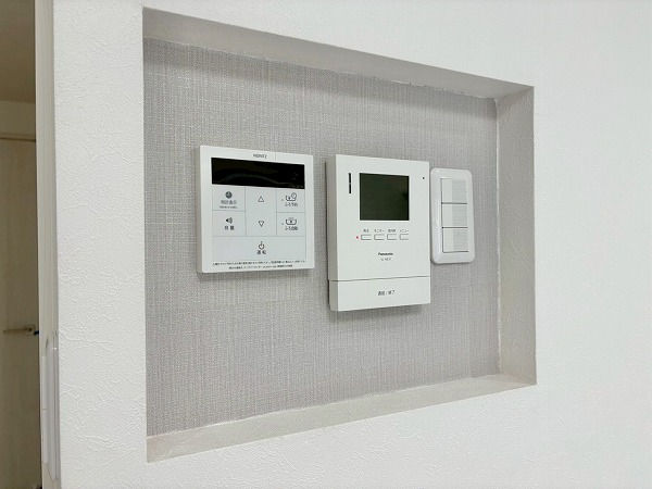 給湯や来客対応など暮らしに欠かせない機能をまとめて管理できる操作パネルを設置。使いたいときにすぐ手が届く位置にあり、日常の操作もスムーズです。モニター付きインターホンでは、訪問者の姿を確認してから応対できるため、防犯面でも安心◎