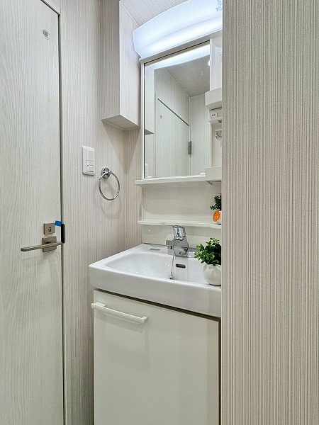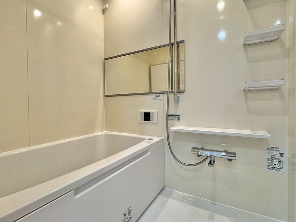 新設のバスルームは追い炊き機能付きで、いつでも自分好みの温度でお風呂に浸かれます。半身浴でリラックスタイムを楽しむのも◎ さらに浴室乾燥機も完備されており、雨の日や夜の洗濯も手軽にこなせますよ!