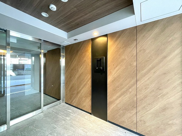 木目の温もりが感じられるデザインで仕上げられたエントランスが、住まいに足を踏み入れた瞬間から特別感を演出。オートロックと防犯カメラが備わり、居住者の安心・安全をしっかり守ってくれます。
