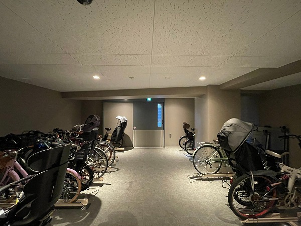 建物内に設置された屋内駐輪場は、雨や風から自転車を守れる安心のスペース。防犯面でも安心感があり、夜間や天候の悪い日でも安心して利用できるのが嬉しいポイントです。