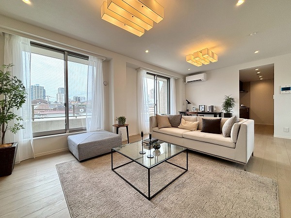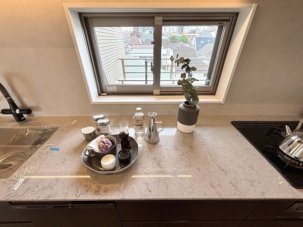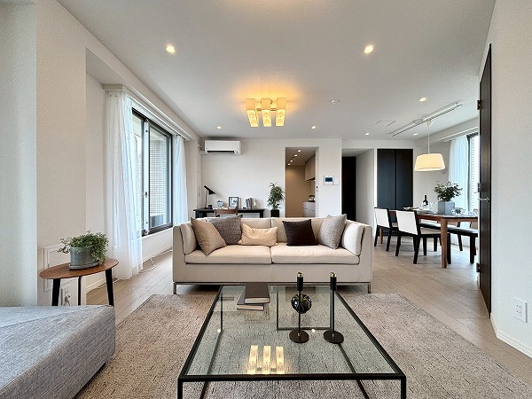 石畳が続く路地や歴史ある建物が残る神楽坂は、どこか懐かしくも洗練された空気が漂う街。おしゃれなカフェやセンスの良いレストランが点在し、大人がゆったり楽しめる隠れ家のような魅力があります。そんな街の一角、神楽坂駅から歩いて8分ほどの静かな住宅街に佇むのが『神楽坂パークハウス』です。今回ご紹介したのは最上階の角部屋。窓が多く室内に自然光がたっぷり差し込むため、開放感に満ちた空間になっています。リノベーションによって内装はモノトーンを基調としたスタイリッシュなデザインに一新され、モダンで洗練された雰囲気に。このお部屋の最大の魅力は、16.18㎡の広々としたルーフテラス。上層階ならではの開放感に包まれ、外の風や光を存分に感じながらリラックスしていただけます。都会にいながらもプライベートな屋外空間が手に入り、アウトドア気分を味わえる特別な空間を是非ご自身の目でお確かめくださいね✧ 撮影・ライター:mao【25J08】