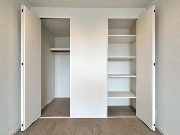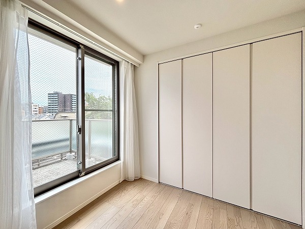 3つの洋室はいずれも窓を備え、たっぷりと自然光が差し込む明るく開放的な空間です。各部屋にはクローゼットが設置され、収納力も充実。家族それぞれが自分の時間を大切にしながら、整った住まいを実現できますね。