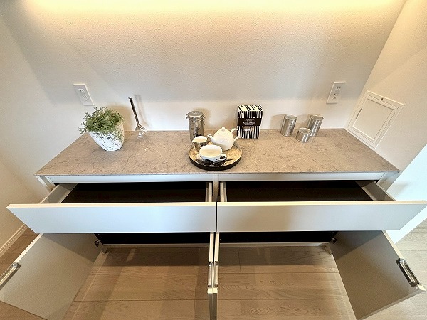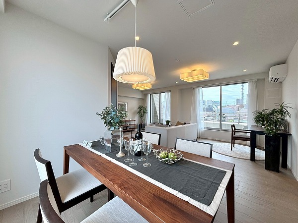 キッチンとつながるダイニングは、配膳や後片付けがスムーズにできる動線を確保。忙しい日常でも家事の負担が軽減され、心地よく過ごせます。ダイニング横の収納スペースを上手に使えば、食器や調理道具がすっきり片付き、見た目も機能性も優れた快適空間に♩