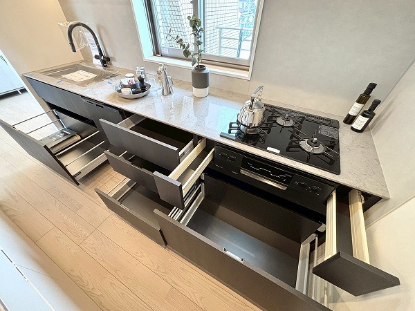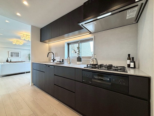 独立型のキッチンはリビングから視線が届きにくく、すっきりと整った印象を保てるのが魅力。来客時でも気兼ねなく料理に集中でき、料理中の香りや音も居住空間に広がりにくいため、快適な生活動線を確保できますよ。
