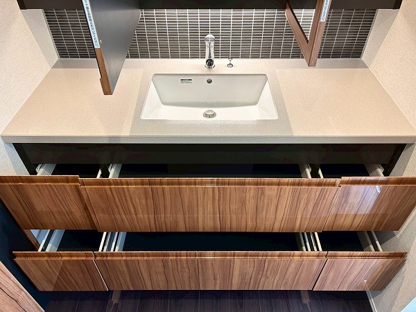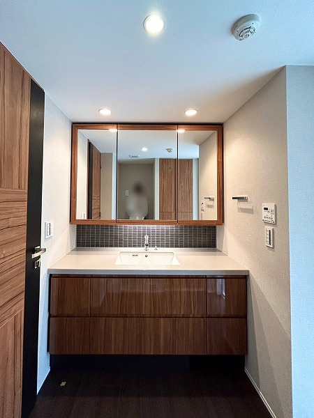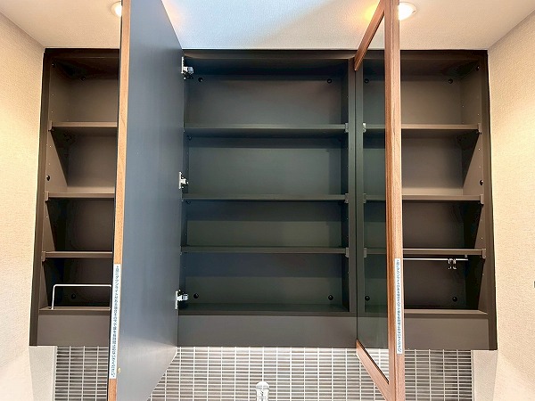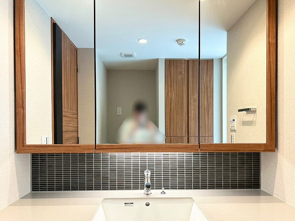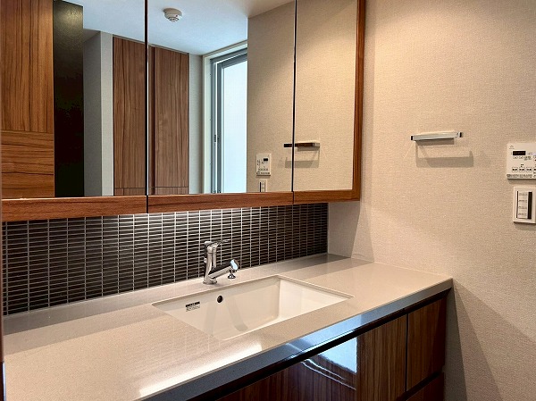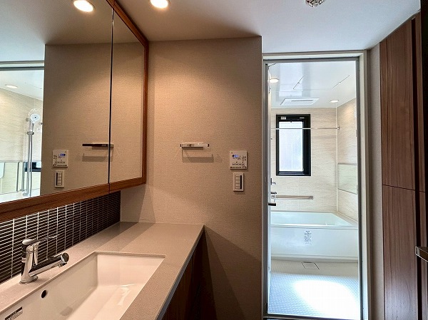 サニタリールームには化粧洗面台・洗濯機置き場・バスルームが集結しています!洗面化粧台は大きな3面鏡が付いているので朝の身支度が捗りそうですね♪収納も十分にある為、水回りを綺麗に保てます✧