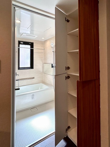 清潔感のあるバスルームは大きめの窓が付いていて光が射し込みかなり明るい印象がありました!便利な浴室乾燥機、追い焚き機能を完備していて毎日快適に入浴できそうですね♪