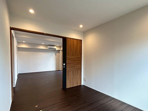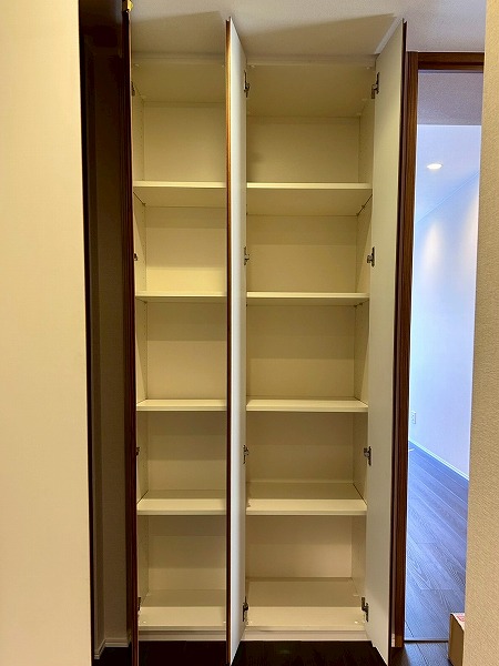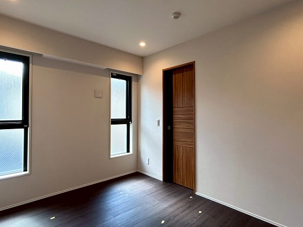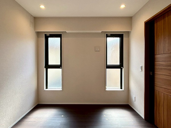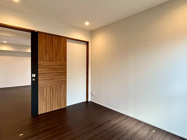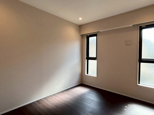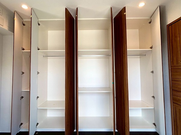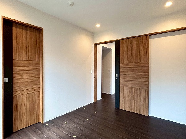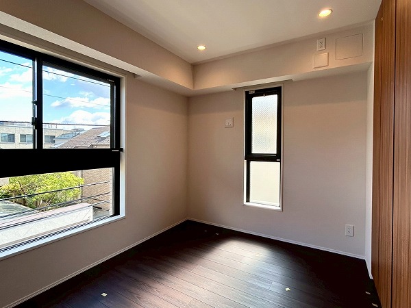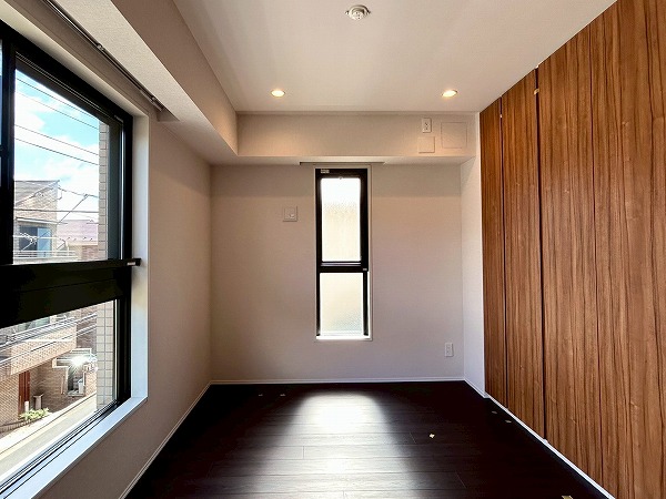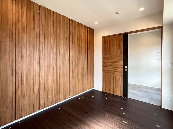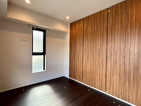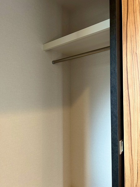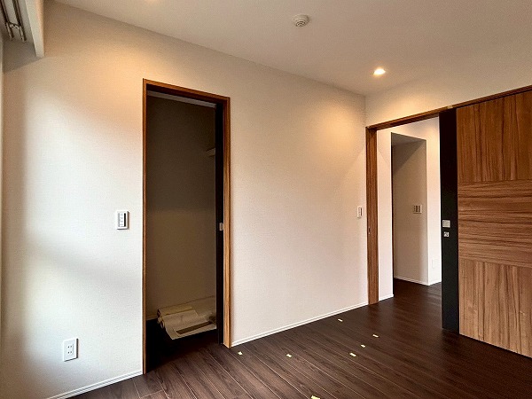 約5.7帖の洋室は、壁一面クローゼットとなっております!収納力が高く、衣類や小物をスッキリと整理できるのが魅力✦扉をしめれば見た目もスッキリしていて生活感を抑えた落ち着いた空間にできそうです♪