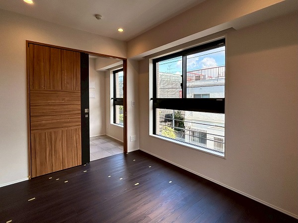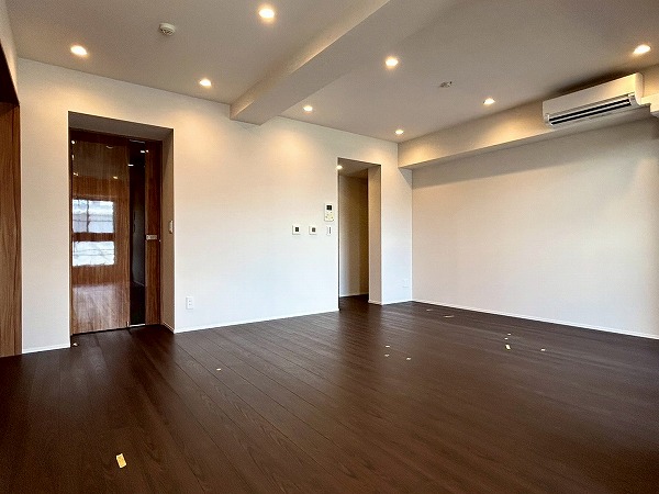 茶色の木目調の床と白の壁は落ち着いていてシンプルなため、インテリアコーディネートを幅広く楽しめそうです♪広々しているのでたくさんインテリアを配置しても余裕がありそう♪