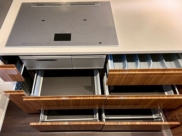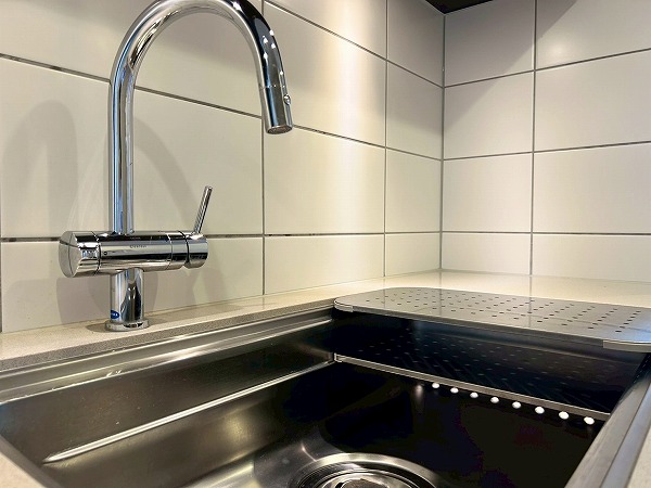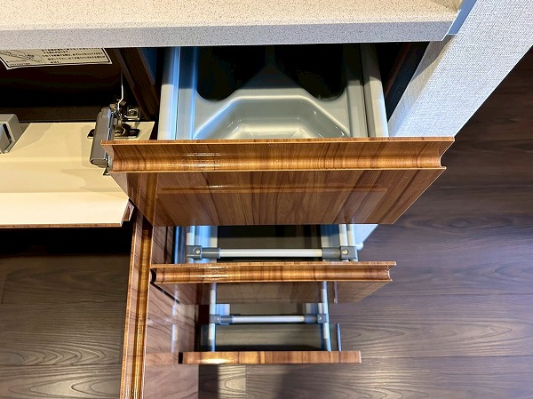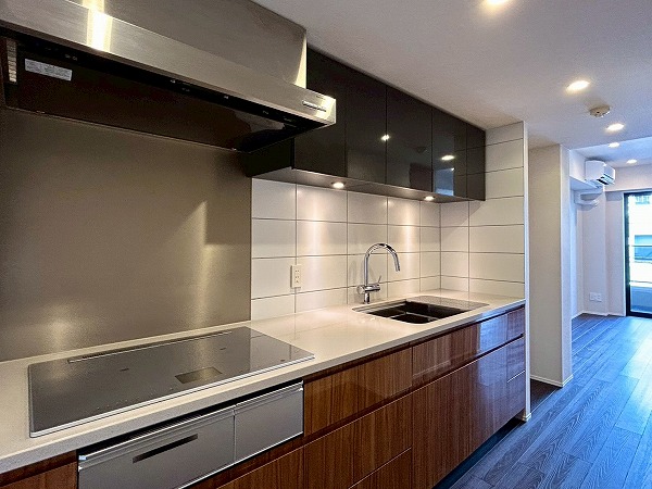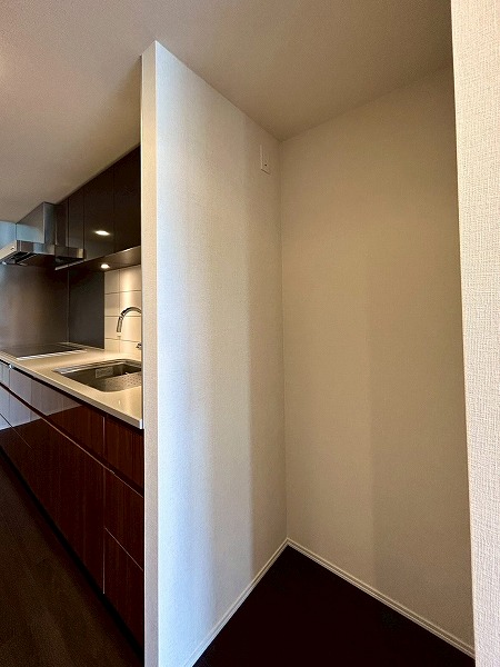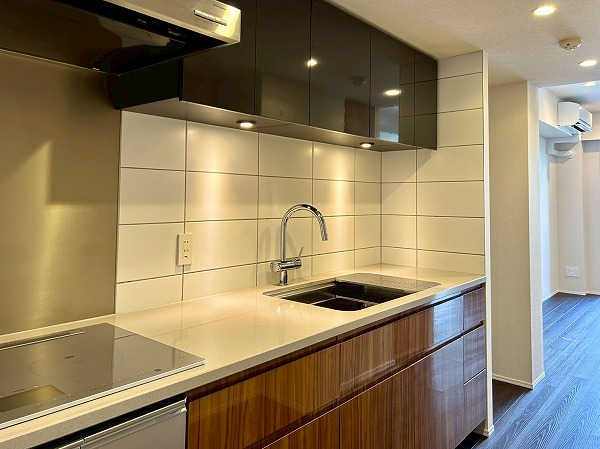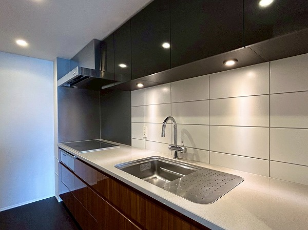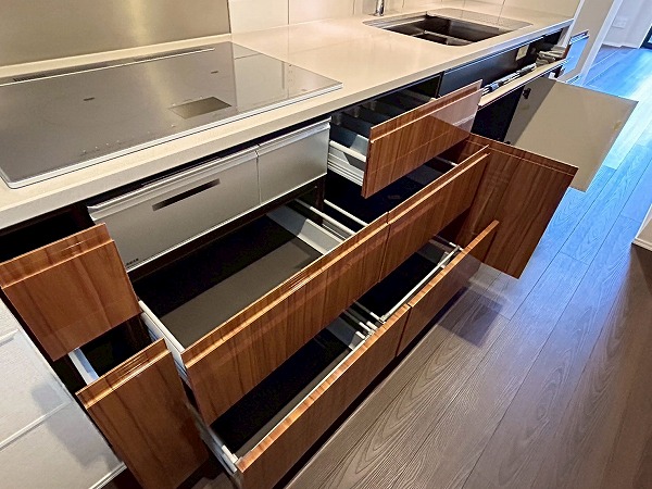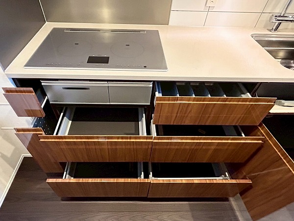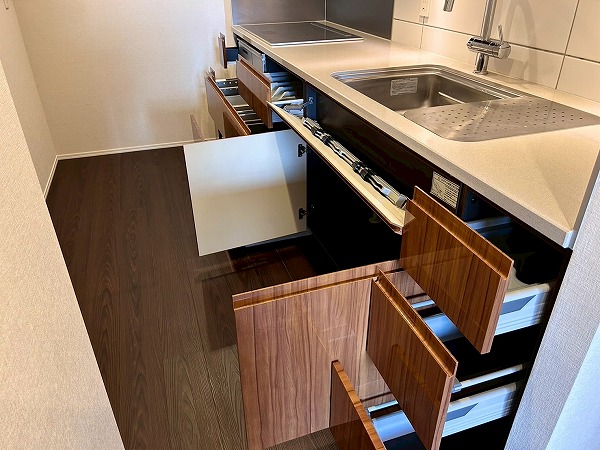 壁付けのキッチンは半独立型となっており、料理に集中できそうですね!収納が豊富で棚の中は細かく仕分けられているので、整理整頓が苦手な方でもスッキリ収納ができそうです♪