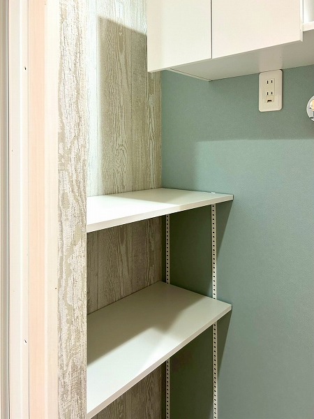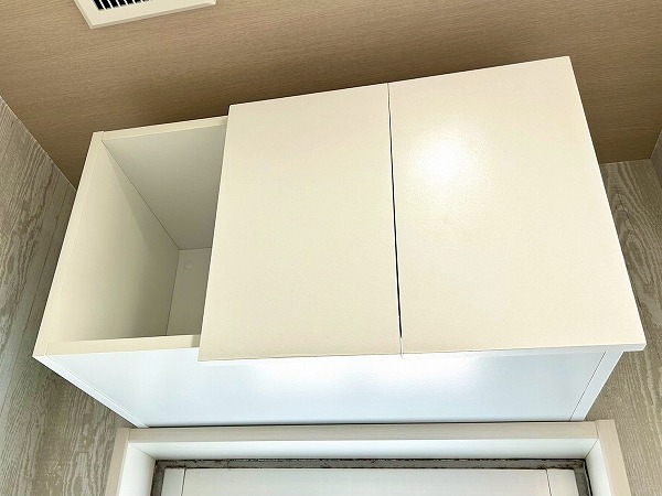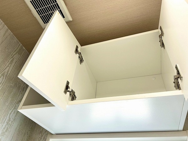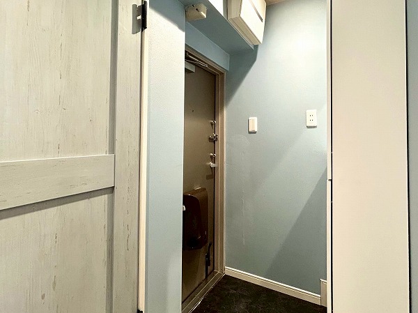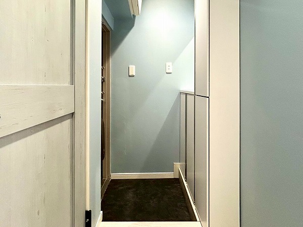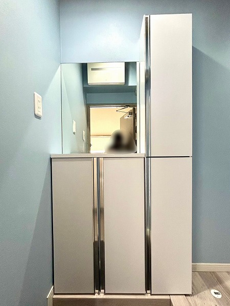 玄関にはシューズボックスがありました。靴を立てておくことができるので通気性が良く、衛生面に優れています✧鏡も設置されており、外出時の身支度チェックもバッチリ行えますよ。