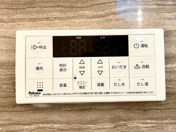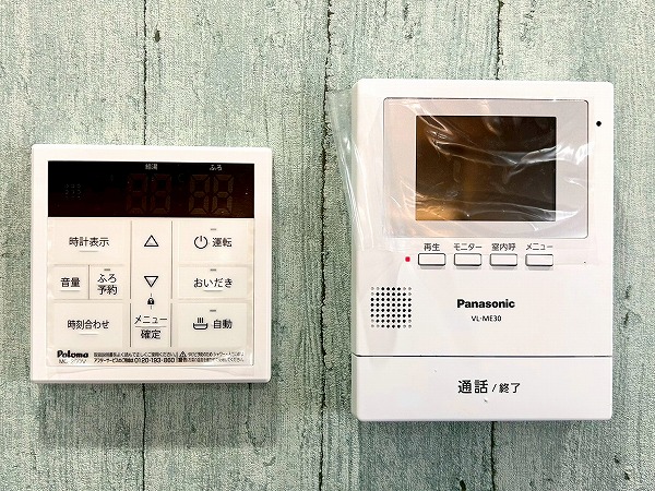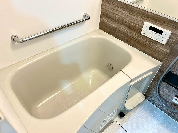 バスルームは追い焚き機能、浴室乾燥機付きで、いつでも温かい湯船に浸かることができます。また、天気の悪い日でも洗濯物を安心して干すことができますよ。木目調のクロスが温かみを感じさせ、リラックスして入浴できそう♪