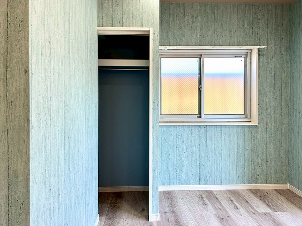 5.8帖の洋室は窓が2つあり、明るく開放的でした。クローゼットが設置されており、散らかりがちな衣類を収納すればお部屋を広々使うことができそうですね♪