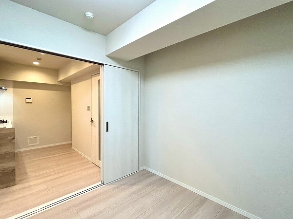 約3.7帖の洋室はキッチンと隣接しており、扉を開けると開放的な空間になります❀オープンクローゼットが設置しており、普段使うコートなどを掛けておけば外出時スムーズに準備を行えそう!