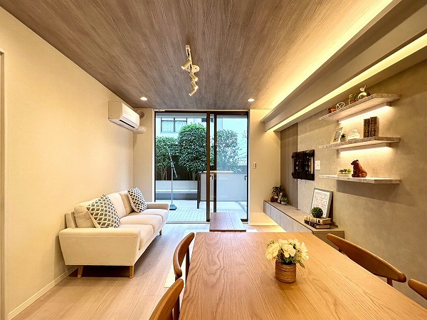 今回ご紹介した『朝日シティパリオ高井戸』は、高井戸駅から徒歩2分という抜群の立地でありながら、自然を身近に感じられる穏やかな環境が魅力のマンションです。高井戸は都心へのアクセスが良く、落ち着いて暮らせるバランスの取れた街として人気があります。駅には直結型の商業施設やスーパーが揃い、日常の買い物もスムーズ!駅前を流れる神田川は季節ごとに表情を変え、特に春には桜並木が楽しめる癒しのスポットとなっています。周辺には公園があり、緑の多い空気感も特徴です。『朝日シティパリオ高井戸』はタイル調の外観が重厚感を演出し、街並みにしっかり溶け込みながらも存在感のある佇まい。今回のお部屋は1階部分の3LDKで、家具・照明付きの為、入居後すぐに快適な暮らしを始められます。約12.5帖のLDKには備え付けの棚や壁付けテレビが設置されており、スマートにまとまった広がりのある空間が特徴です。天井の木目調デザインなど、細部までこだわりを感じる内装もポイント✧各洋室には収納がしっかり確保され、日々の片付けもしやすくなっています。さらに、専用庭は約26.99㎡とゆとりのある広さ。テーブルやチェアを置けば、外の空気を感じながらリラックスできるプライベート時間を楽しめます。暮らしやすさと自然の心地よさ、どちらも欲しい方にぴったりの1室です♪ ライター:kanna【25L08】