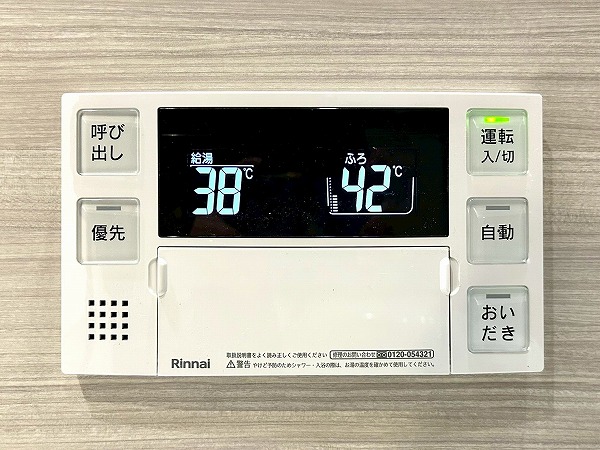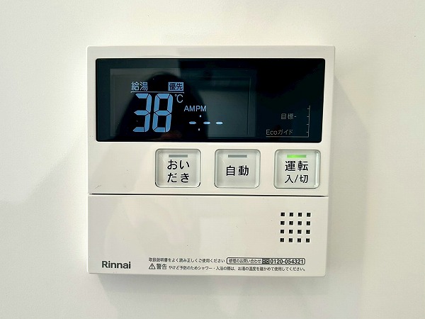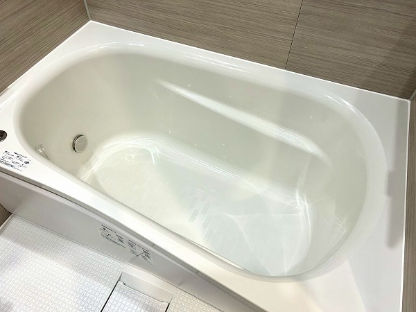 ベージュの木目調のバスルームは明るく、清潔感があります。追い焚き機能、浴室乾燥暖房付きで、いつでも快適な温度で入浴が可能。浴室乾燥機を使えば、雨の日でも洗濯物を乾かすことが出来ますよ。